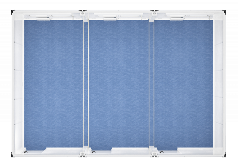 54 qm Grundfläche – damit bietet unsere größte Trioanlage maximale Entfaltungsmöglichkeiten und eignet sich beispielsweise als Bürocontainer mit mehreren Arbeitsplätzen. Mit bildschirmtauglicher Beleuchtung sowie intelligent installierten Mehrfachsteckdosen ist die Trioanlage für den modernen Business-Alltag gerüstet. Praktisches Ausstattungsdetail: Die magnetischen, leicht abwaschbaren Wandelemente eignen sich perfekt für das Aufhängen von Planskizzen und Notizen.