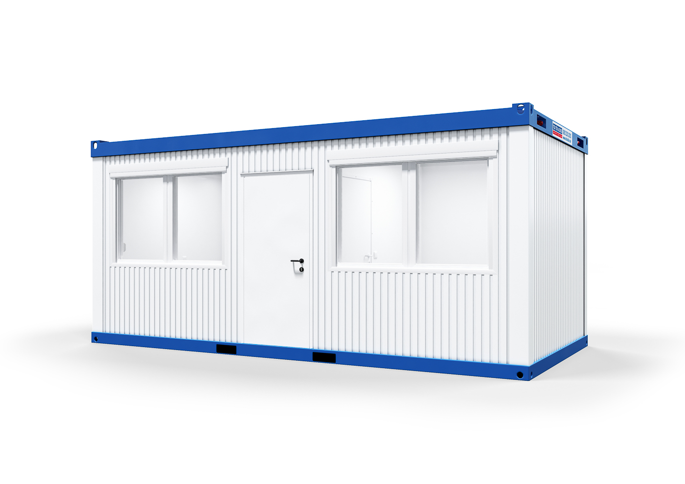 The multipurpose container (6 x 3 m) with partition and vestibule offers several extras. On the one hand, the larger footprint gives you more space for your project. On the other hand, a partition allows for a particularly effective use of the container. The partition wall creates two separate rooms. In addition, the model boasts a generous vestibule, which provides protection against drafts and cold air. The rest of the interior is based entirely on your wishes. Elements such as office workstation lighting, multiple sockets, and magnetic wall elements make it convenient for use as office space. Thanks to its standard construction, the 20-foot container can be easily integrated into container facilities.